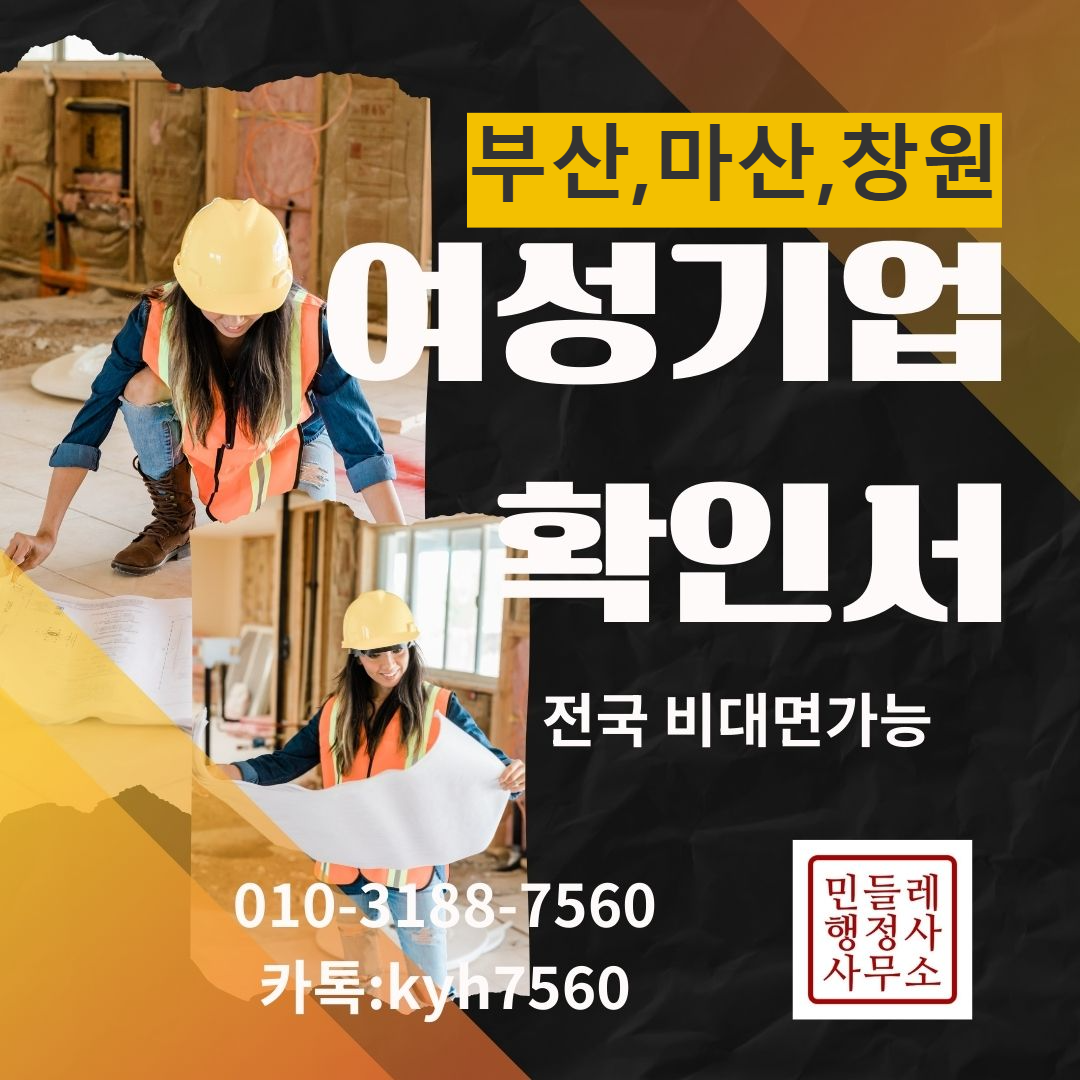 부산, 마산, 창원 지역에서 건설업이나 제조, 서비스업을 운영하시는 여성 대표님들! 공공기관 수의계약이나 입찰 가점을 위해 '여성기업확인서'가 꼭 필요하지만, 복잡한 서류와 까다로운 실사 인터뷰 때문에 망설이고 계셨나요? 특히 심사가 엄격한 건설업 법인이라도 걱정 마세요. 민들레행정사가 대표님의 든든한 파트너가 되어 승인의 기쁨을 함께하겠습니다.