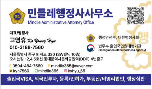 민들레행정사사무소 (대표: 고영휴 Steve Ko)
