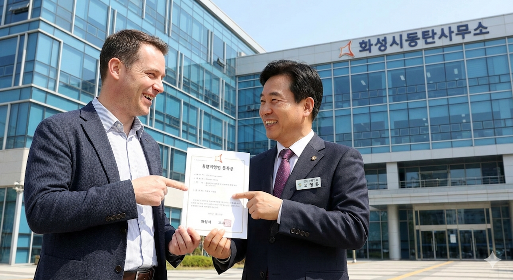 화성 동탄 지역의 여행업 등록은 시청 본청이 아닌 동탄출장소(총무과)에서 담당합니다. 민들레행정사는 최근 외국인 대표자의 법인 건을 직접 접수하여 단 7일 만에 관광사업등록증을 받아냈습니다.