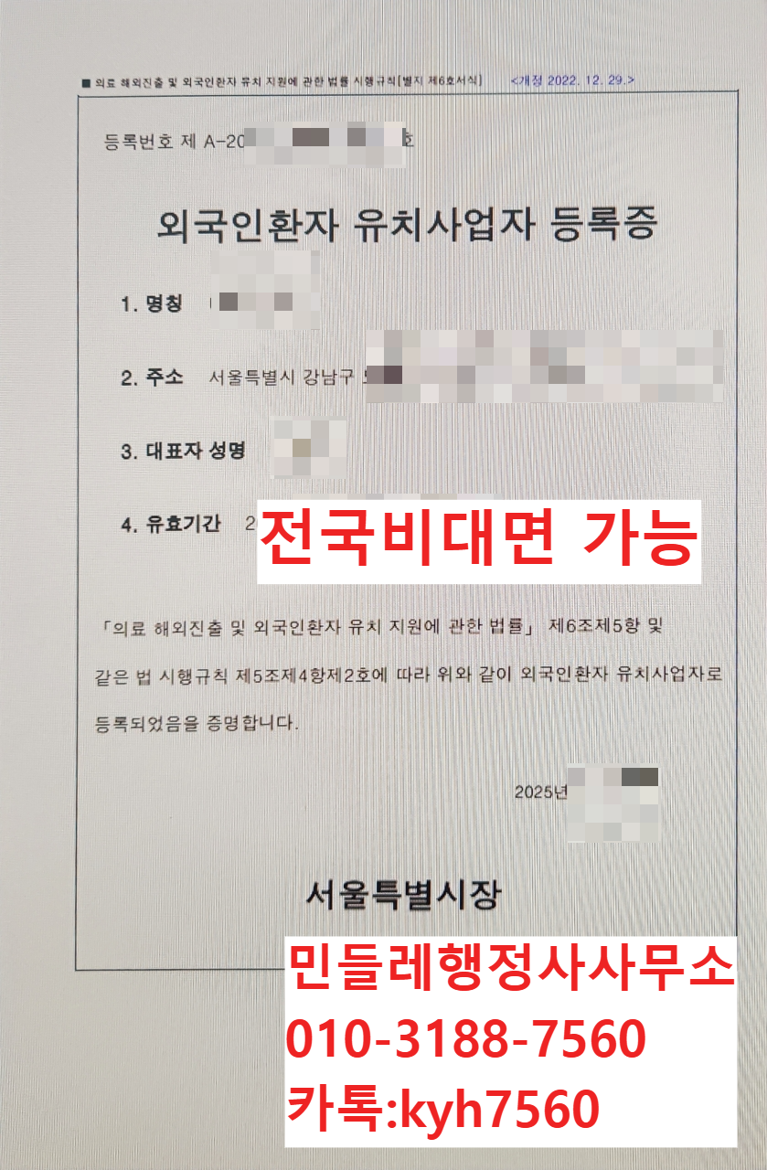 #외국인환자유치업 #외국인환자유치사업자등록 #서울강남유치업 #의료관광사업등록 #외국인환자유치기관 #급행등록 #자본금1억요건 #보증보험증권 #민들레행정사사무소 #행정사고영휴
