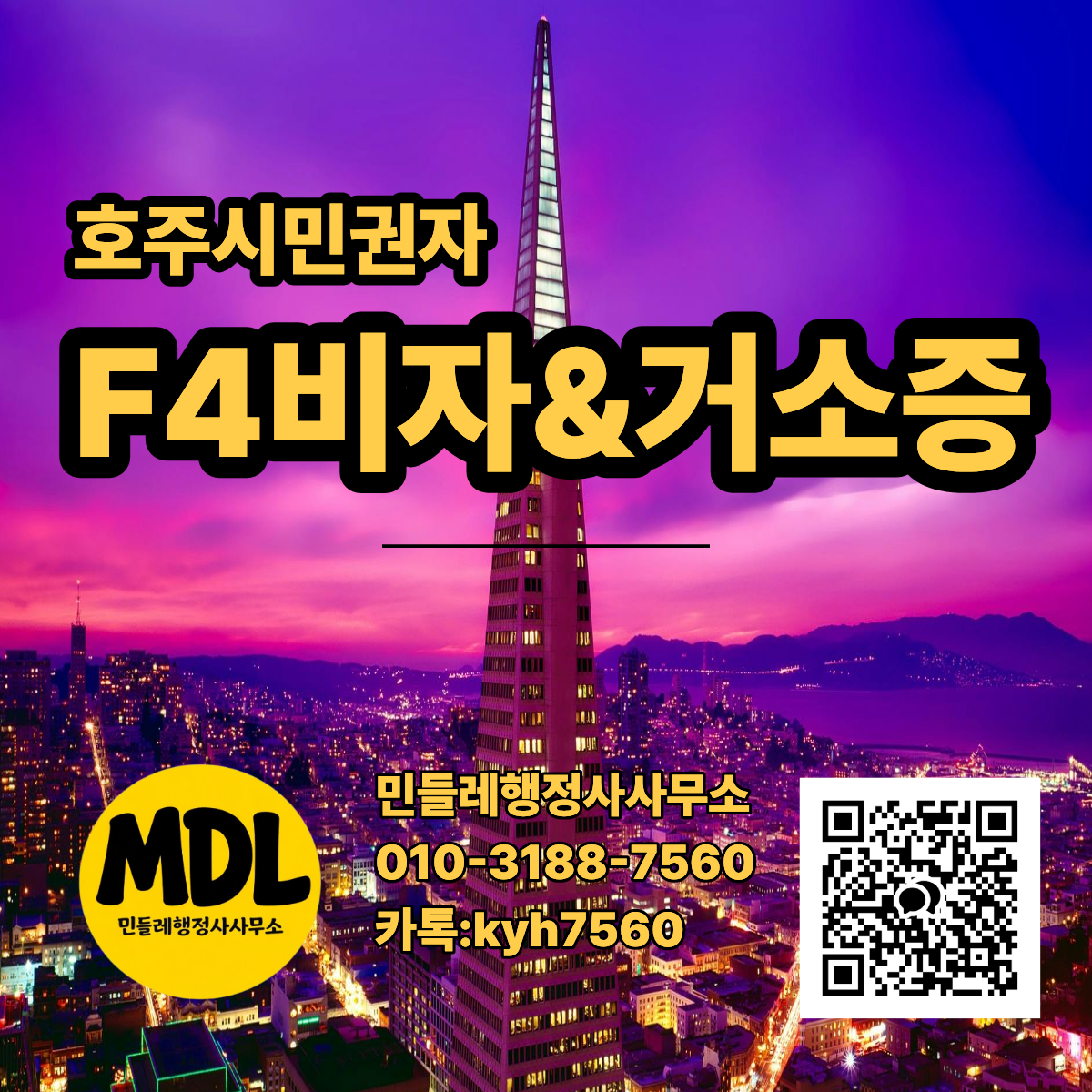 * 수수료: F-4 비자 10만 원 / 거소증 3.5만 원 (택배비 별도)