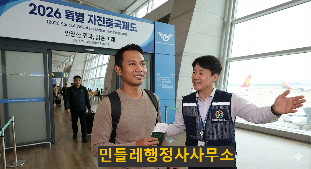 #2026특별자진출국제도 #불법체류자자진출국 #범칙금면제 #입국규제유예 #민들레행정사사무소 #하이코리아사전신고 #재입국비자 #외국인불법체류상담 #출입국행정사 #불법체류성공사례